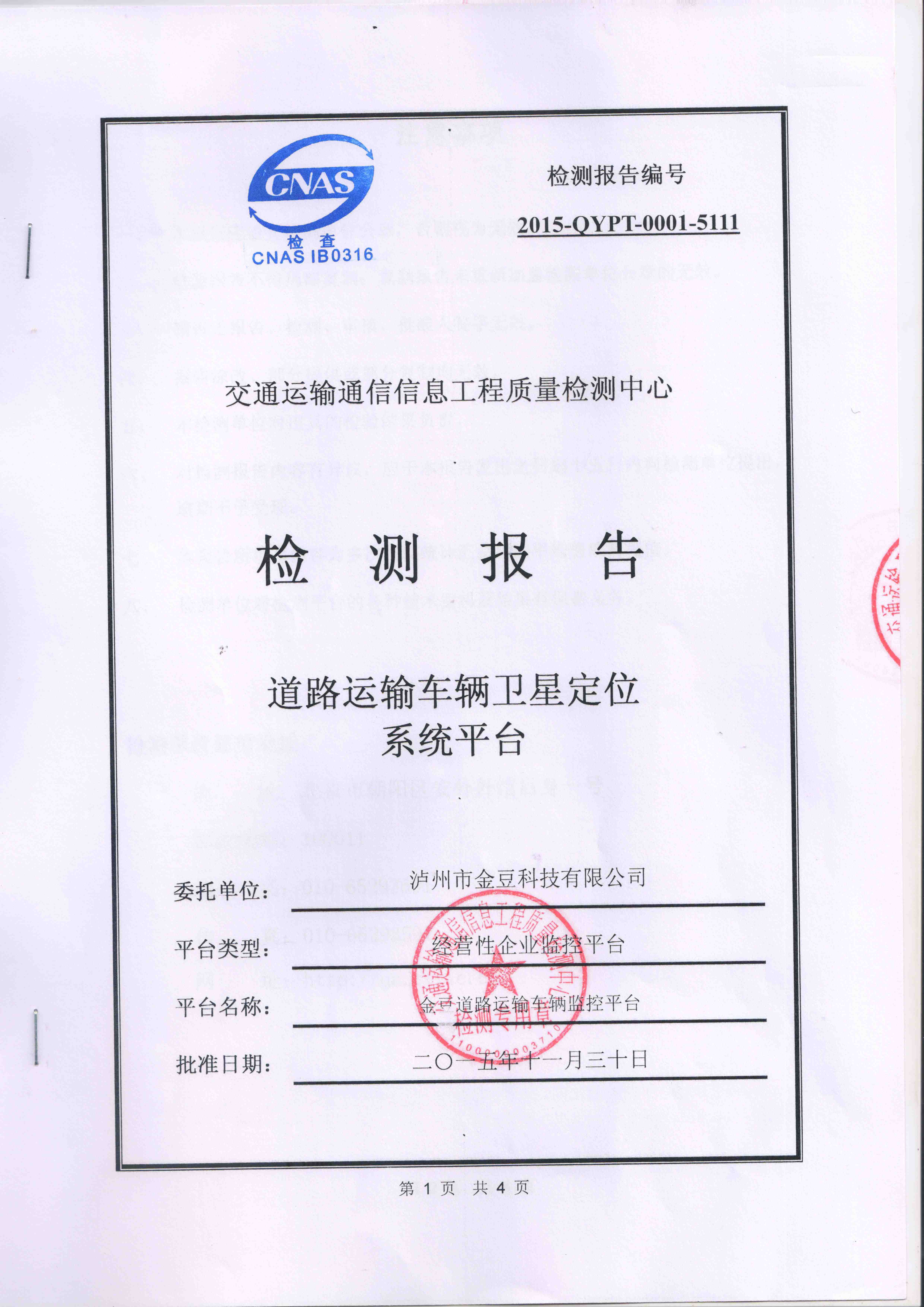 熱烈慶祝金豆科技公司GPS平臺(tái)通過(guò)中華人民共和國(guó)交通部...